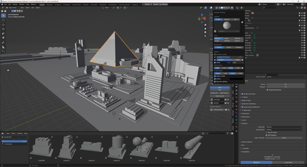09- Duplicare oggetti e costruire una scena (un paesaggio urbano) con forme base