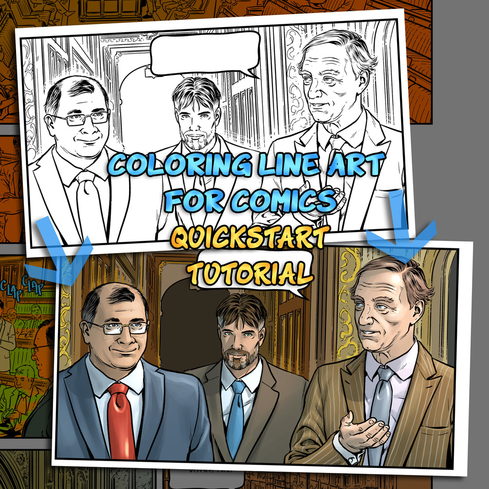 In this tutorial I share my typical workflow for coloring comics. I start from an hi-res scan and I go through every step to a final PSD. I focus and finish just one panel of the page, but the steps on other panels are the same.