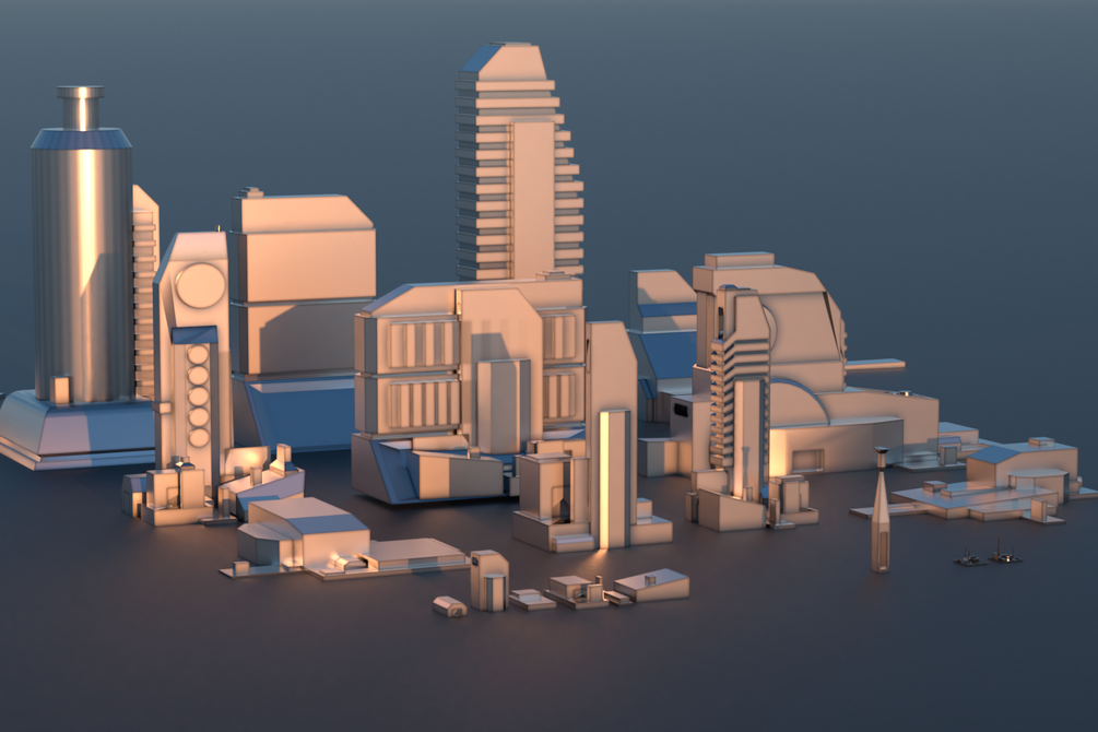 Città sci-fi in stile fumetto / manga con Blender